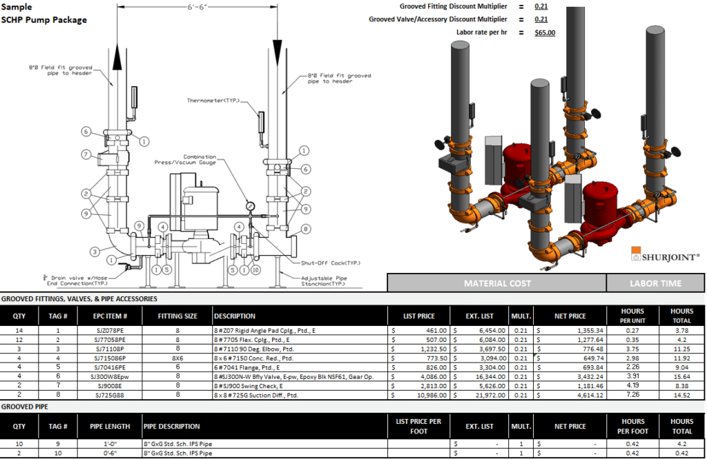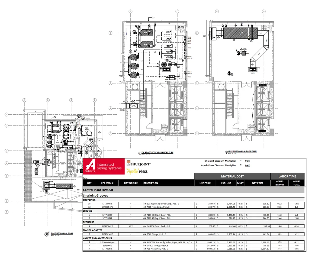 - detaillierte Materiallisten von Aalberts IPS Fittings, Rohrleitungen, Ventilen und Zubehör