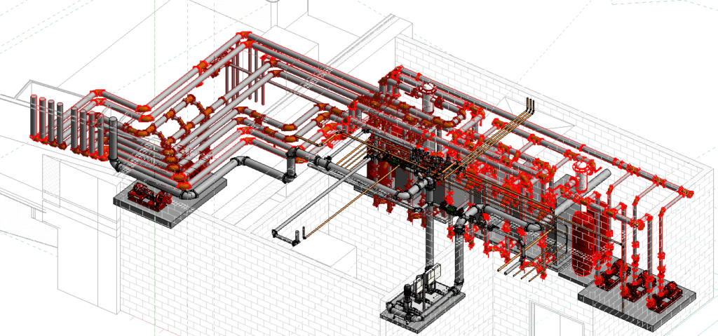 detaillierte 3D-CAD/BIM-Lösungen von Aalberts-IPS-Produkten für den Anschluss von Anlagenkomponenten wie Pumpen, Lüftungsanlagen, Kühler, Anschlusssätze, Regelventile usw