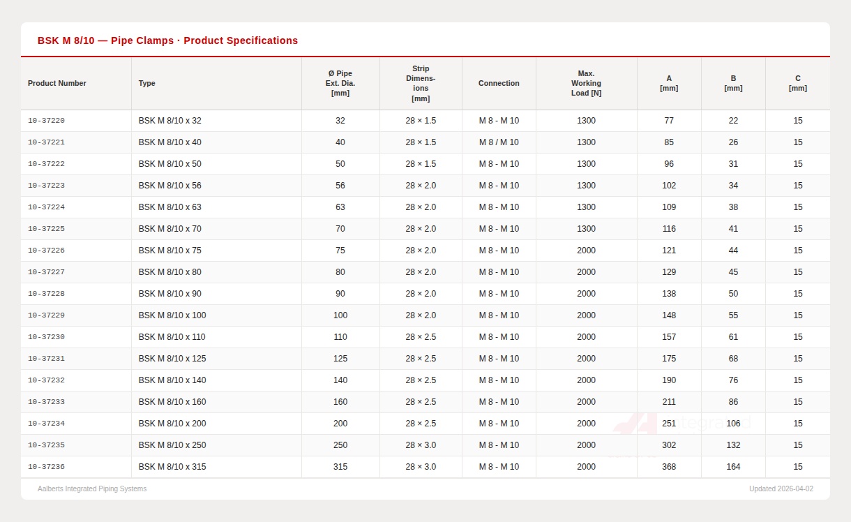 BSK-8-10 BSK-8-10 - BSK Rohrschellen M8/M10Abmessung