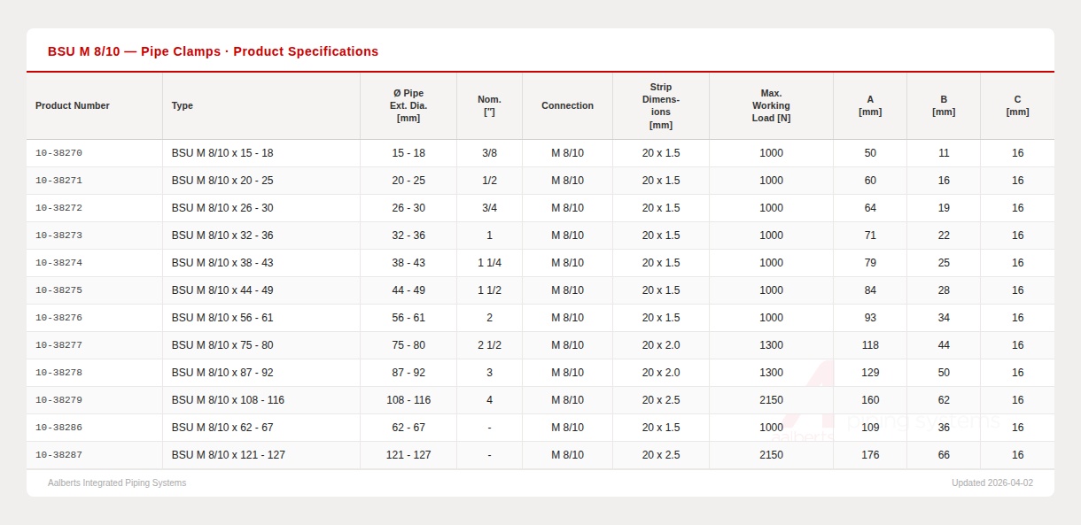 Universelle Rohrschellen, geeignet für Stahlrohre für vertikale und horizontale Montage.